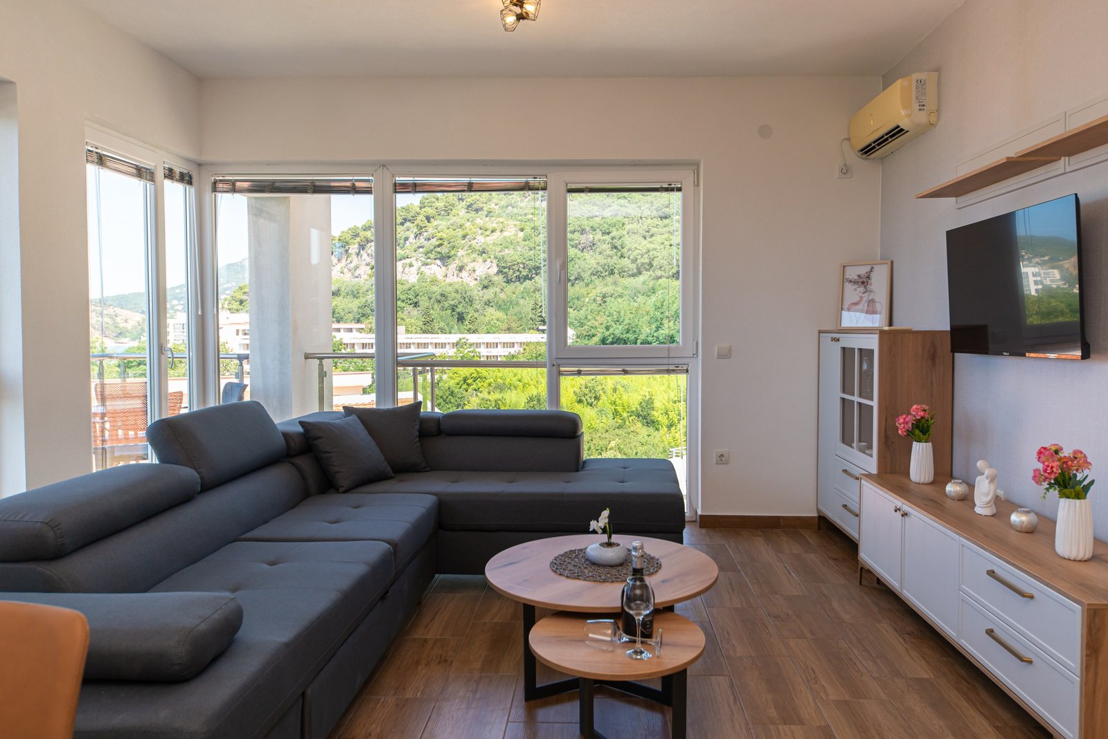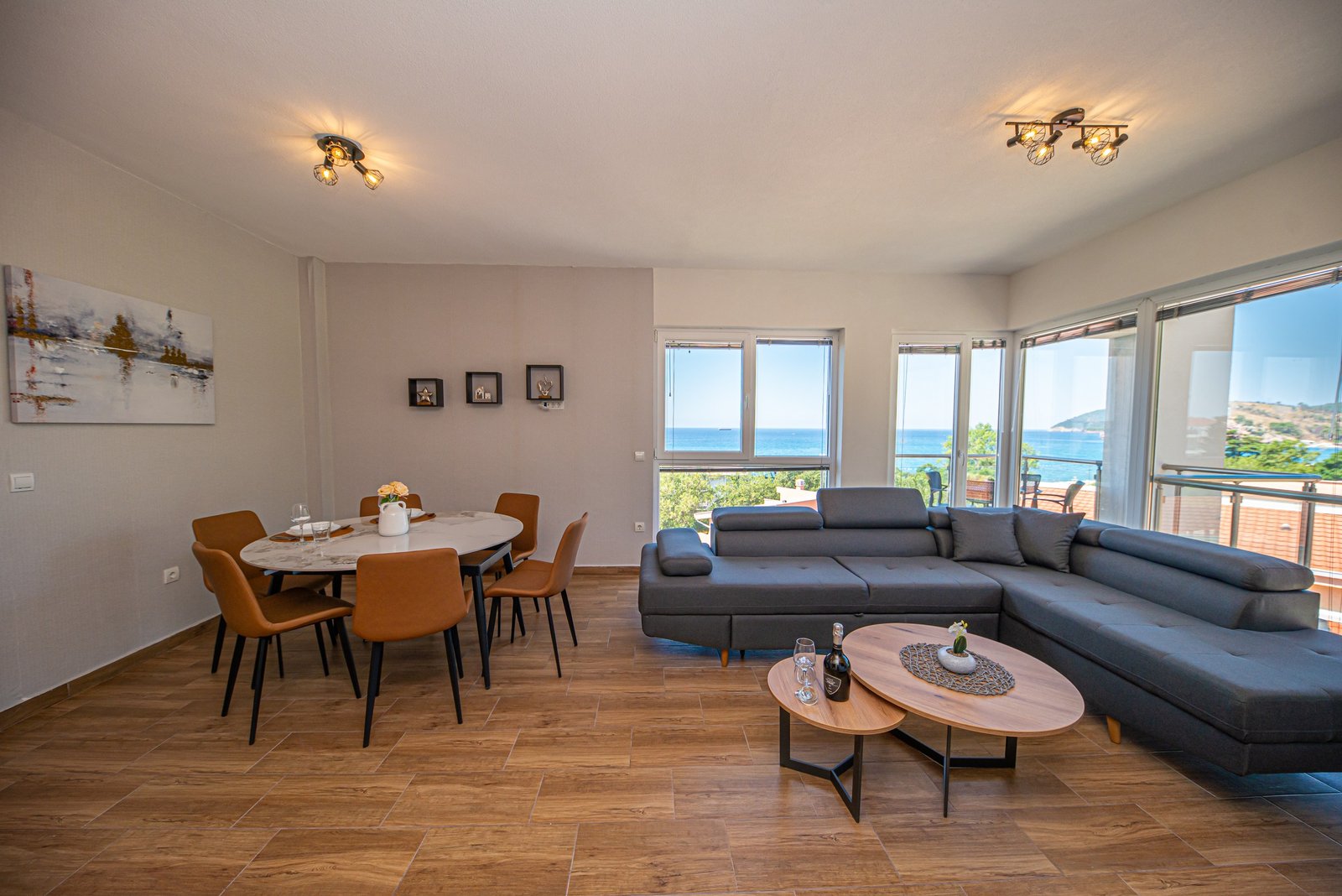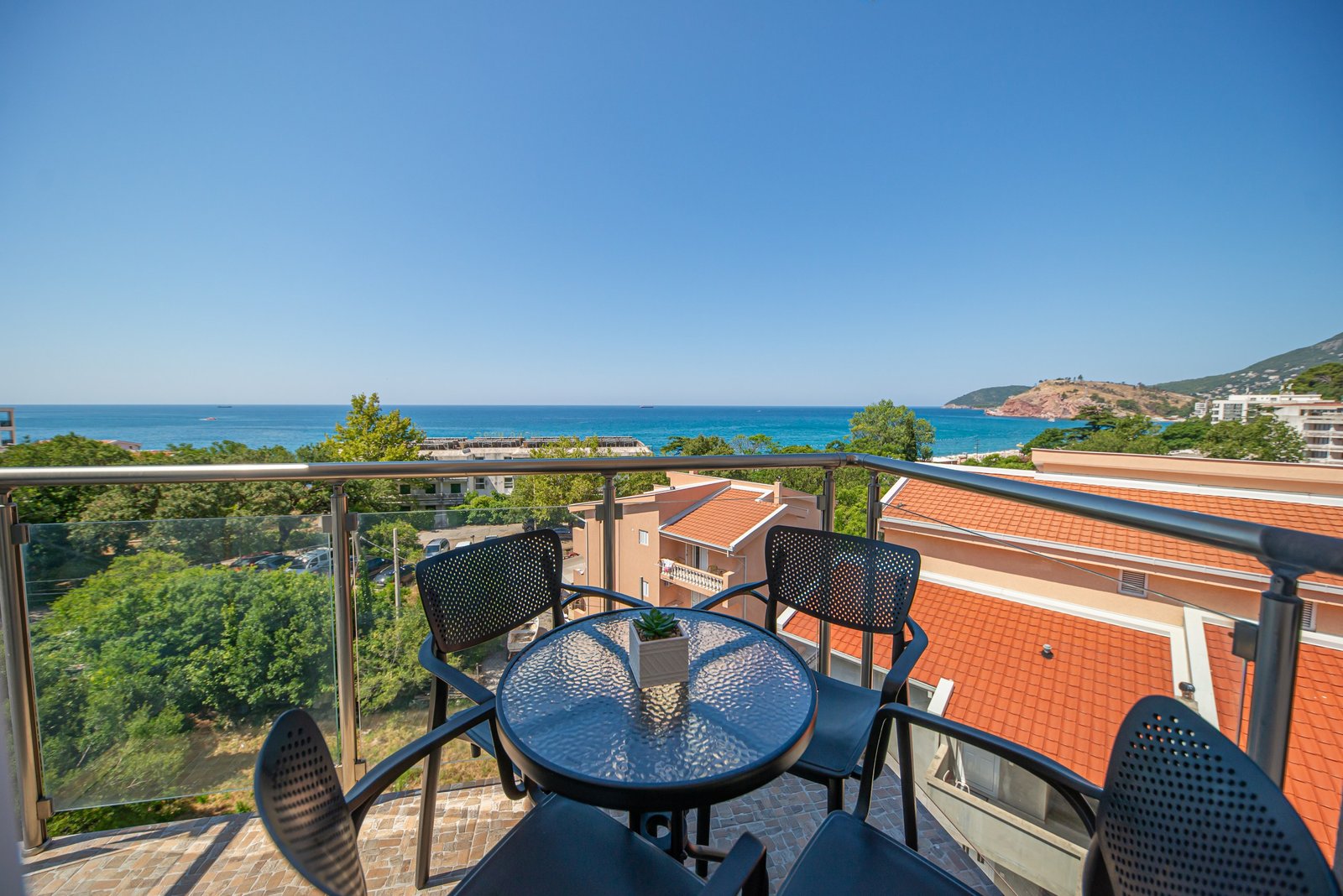 Luksuzan dvosoban stan 44 opremljen je u julu 2025. godine i pruža jedinstven spoj prostranosti, komfora i luksuza. Nalazi se na trećem spratu stambene zgrade, veličine 76m², i orijentisan je ka jugozapadu – što omogućava predivan panoramski pogled na more i brda iz dnevne i spavaćih soba.