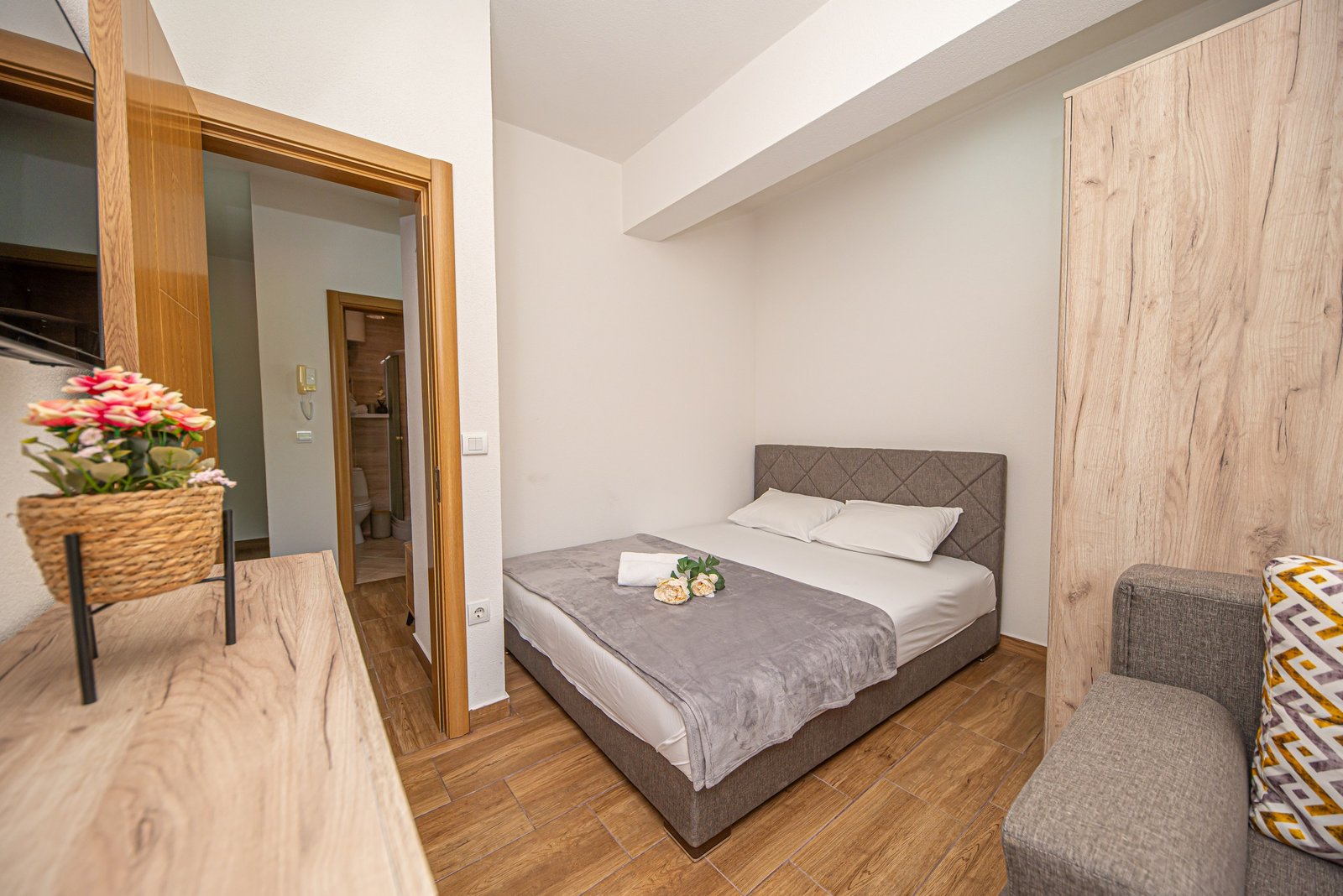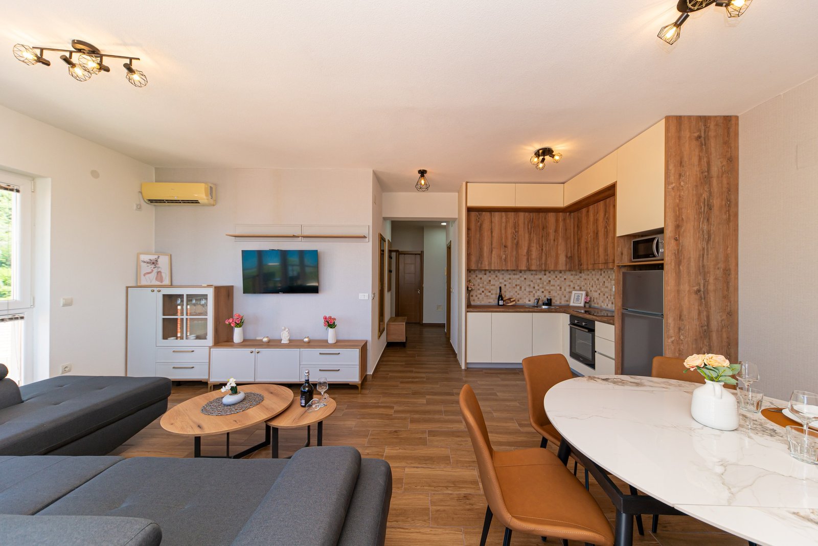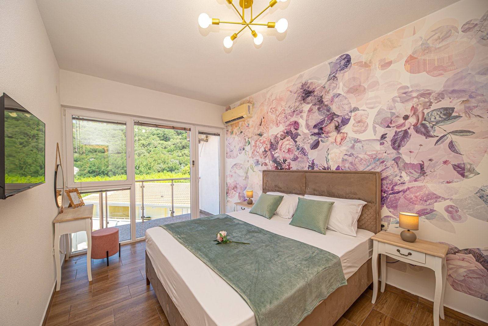 Luksuzan dvosoban stan 44 opremljen je u julu 2025. godine i pruža jedinstven spoj prostranosti, komfora i luksuza. Nalazi se na trećem spratu stambene zgrade, veličine 76m², i orijentisan je ka jugozapadu – što omogućava predivan panoramski pogled na more i brda iz dnevne i spavaćih soba.