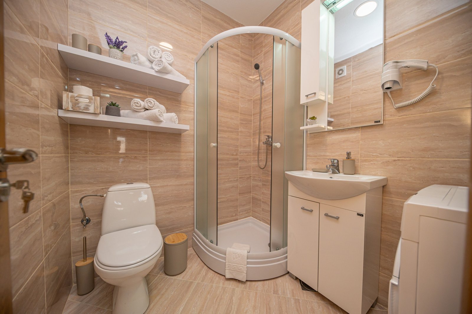 ✓ 2 kupatila sa tuš kabinama (u jednom veš mašina)